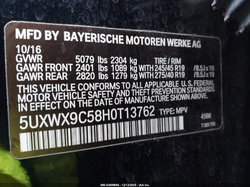 Колір ЧорнийЦиліндри 4Привід Повний привідVIN 5UXWX9C58H0T13762Стан Заводиться та їде (перевірено)Ушкодження Передня права AutoRIA