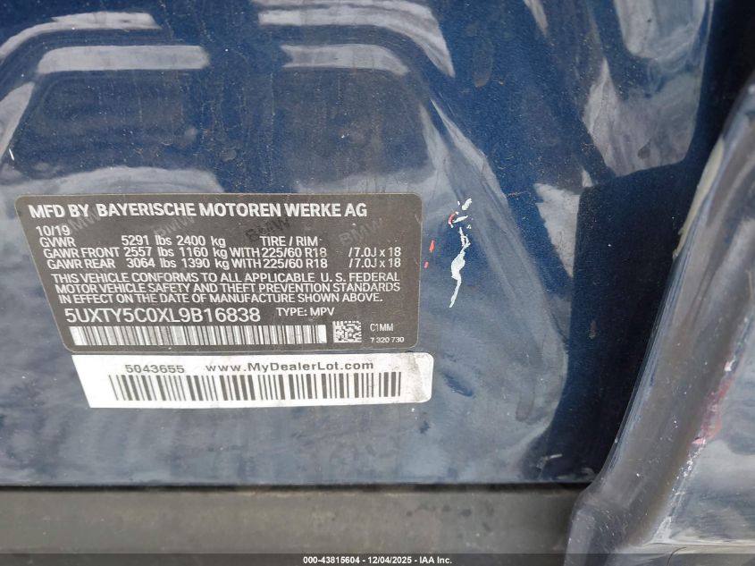 2020 BMW X3 2020 року Бензин, 2.0, Повний привід, vin - 5UXTY5C0XL9B16838 з США