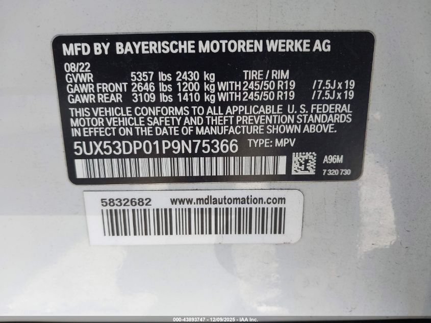 2023 BMW X3 2023 року Бензин, 2.0, Повний привід, vin - 5UX53DP01P9N75366 з США