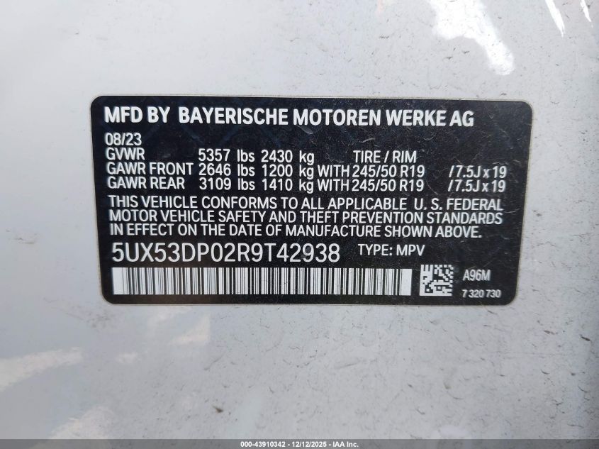 2024 BMW X3 2024 року Бензин, 2.0, Повний привід, vin - 5UX53DP02R9T42938 з США