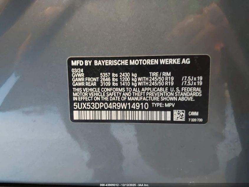 2024 BMW X3 2024 року Бензин, 2.0, Повний привід, vin - 5UX53DP04R9W14910 з США