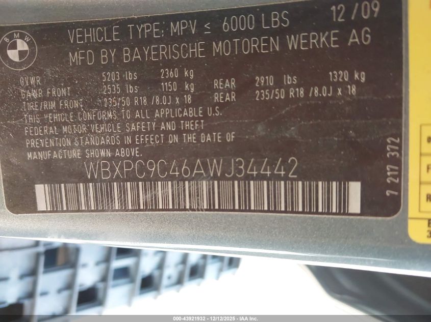 2010 BMW X3 2010 року Бензин, 3.0, Повний привід, vin - WBXPC9C46AWJ34442 з США