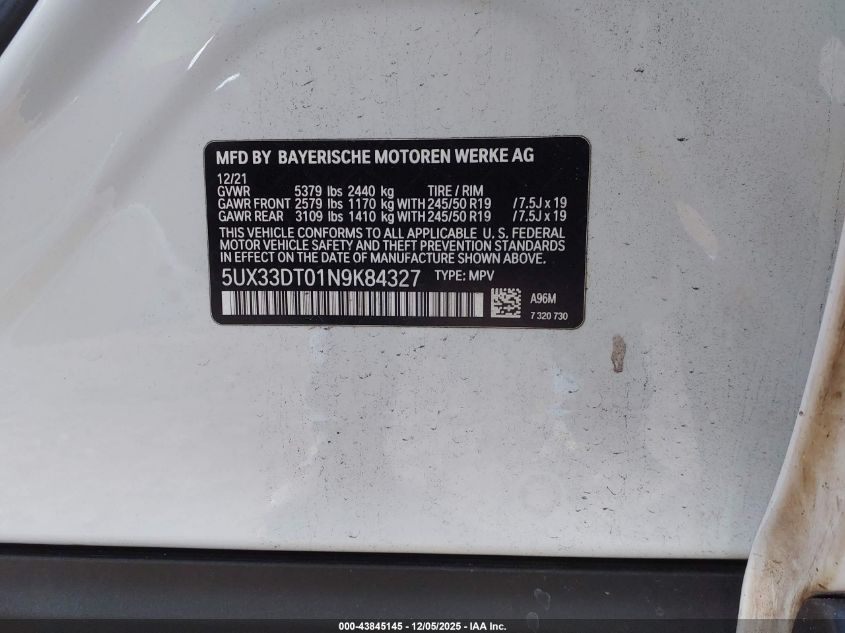 2022 BMW X4 2022 року Бензин, 2.0, Повний привід, vin - 5UX33DT01N9K84327 з США