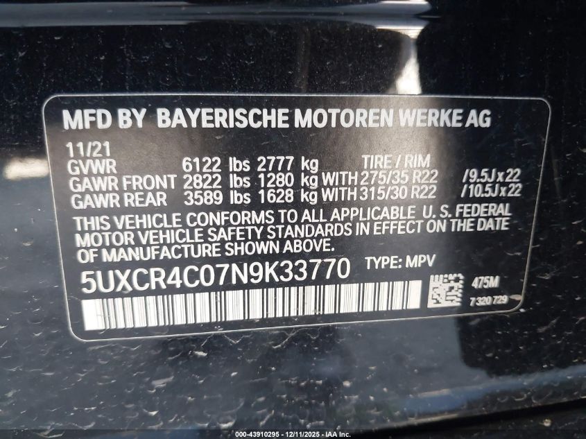 2022 BMW X5 2022 року Бензин, 3.0, , vin - 5UXCR4C07N9K33770 з США