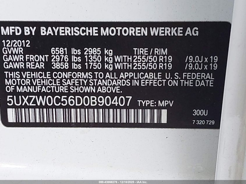 Колір БілийЦиліндри 6Привід Повний привідVIN 5UXZW0C56D0B90407Стан Заводиться та їде (перевірено)Ушкодження Передня або задня AutoRIA