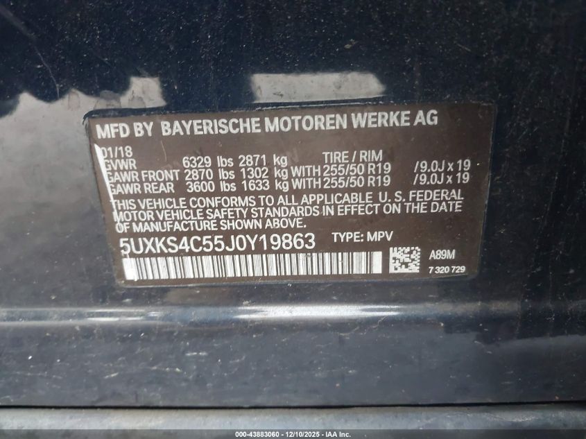 Колір СинійЦиліндри 6Привід Повний привідVIN 5UXKS4C55J0Y19863Стан Заводиться та їде (перевірено)Ушкодження Передня або задня AutoRIA