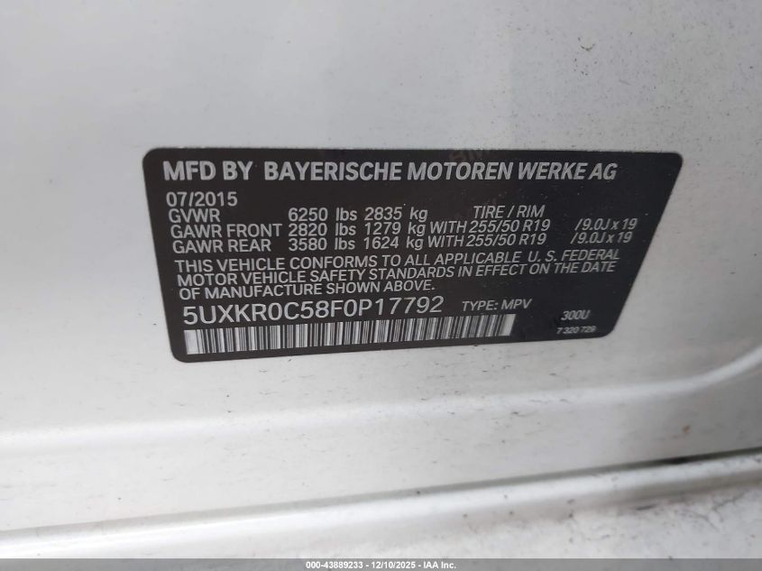 Колір БілийЦиліндри 6Привід Повний привідVIN 5UXKR0C58F0P17792Стан Заводиться та їде (перевірено)Ушкодження Передня або задня AutoRIA
