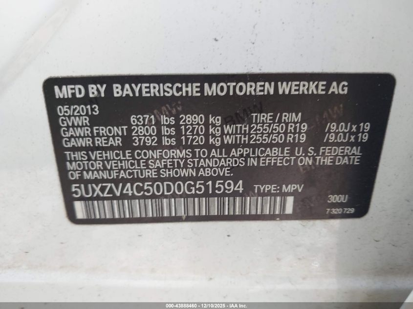 Колір БілийЦиліндри 6Привід Повний привідVIN 5UXZV4C50D0G51594Стан Заводиться та їде (перевірено)Ушкодження Ліва сторона AutoRIA