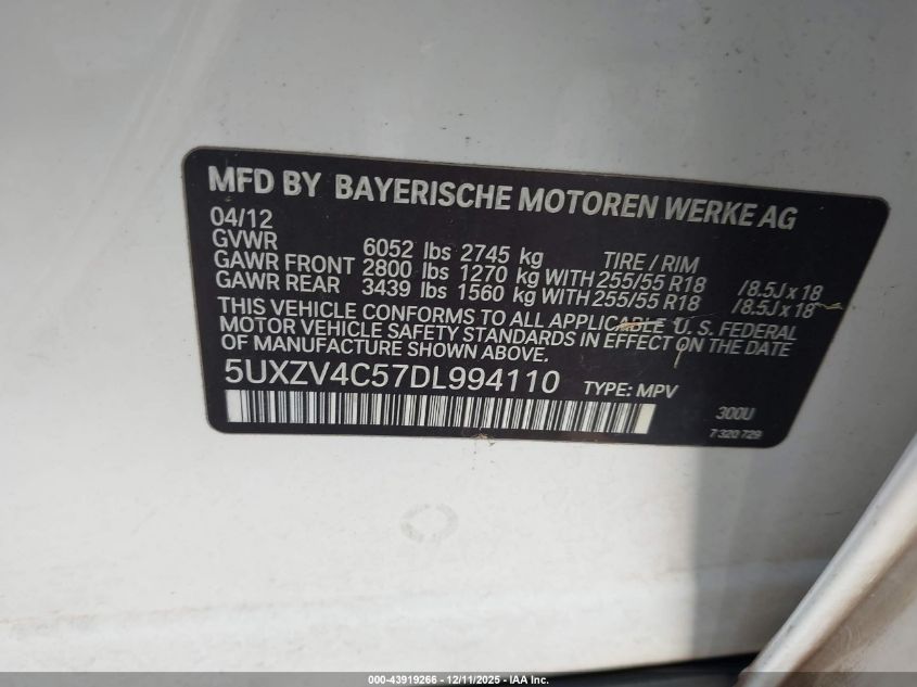 Колір БілийЦиліндри 6Привід Повний привідVIN 5UXZV4C57DL994110Стан НевідомоУшкодження Звичайний знос AutoRIA