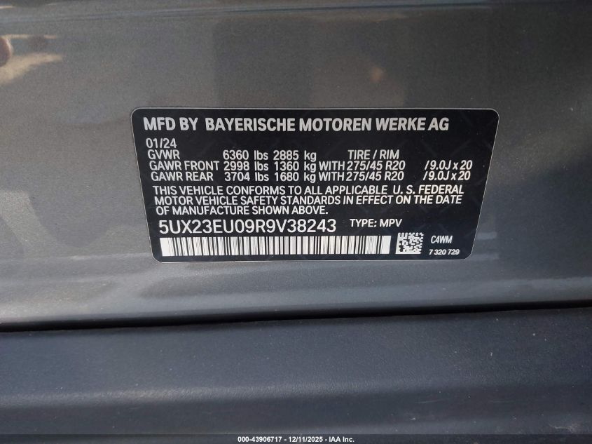 2024 BMW X5 2024 року Бензин, 3.0, Повний привід, vin - 5UX23EU09R9V38243 з США