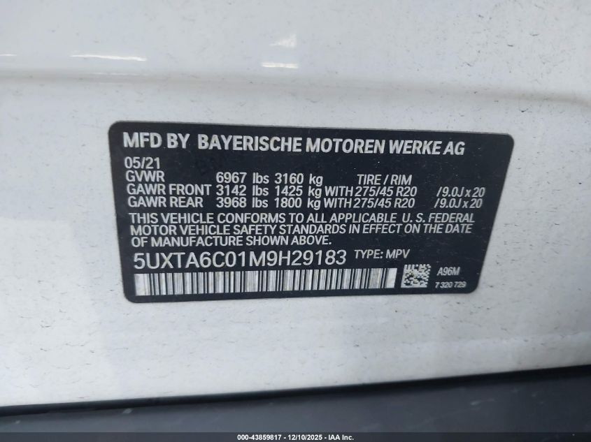 2021 BMW X5 2021 року Гібрид, 3.0, Повний привід, vin - 5UXTA6C01M9H29183 з США