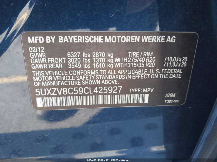 2012 BMW X5 2012 року Бензин, 4.4, Повний привід, vin - 5UXZV8C59CL425927 з США