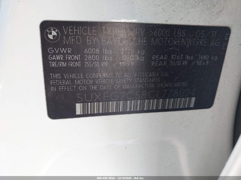 Колір БілийЦиліндри 6Привід Повний привідVIN 5UXFG2C58CL778024Стан Заводиться та їде (перевірено)Ушкодження Передня або задня AutoRIA