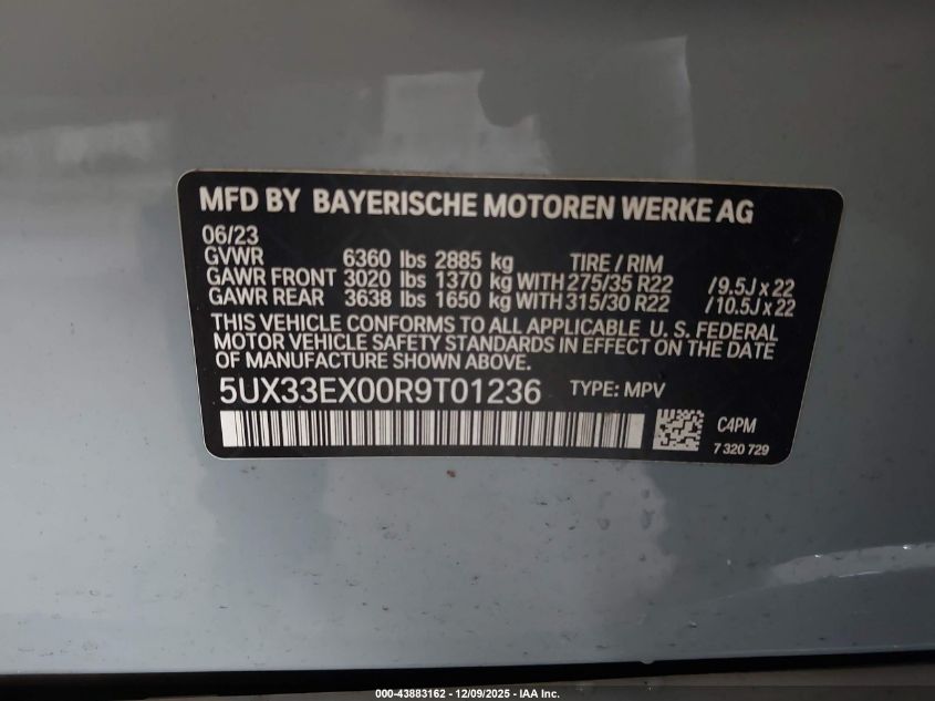 2024 BMW X6 2024 року Бензин, 3.0, Повний привід, vin - 5UX33EX00R9T01236 з США