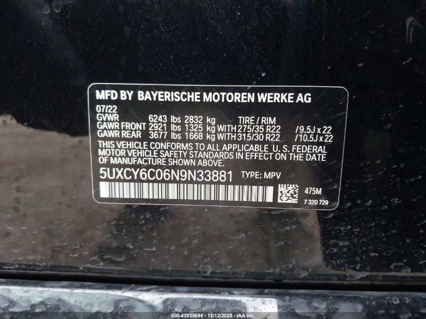 2022 BMW X6 2022 року Бензин, 3.0, Повний привід, vin - 5UXCY6C06N9N33881 з США