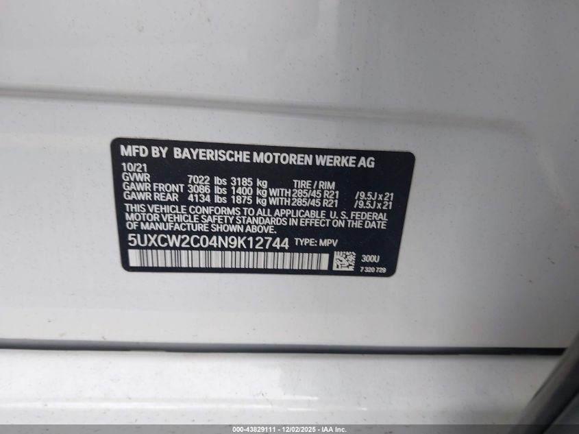 2022 BMW X7 2022 року Бензин, 3.0, Повний привід, vin - 5UXCW2C04N9K12744 з США