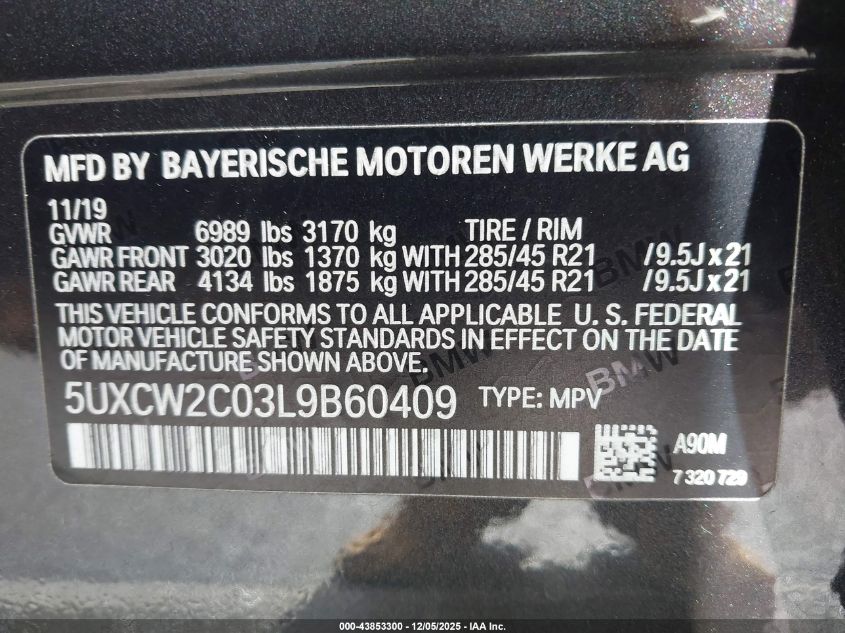 2020 BMW X7 2020 року Бензин, 3.0, Повний привід, vin - 5UXCW2C03L9B60409 з США