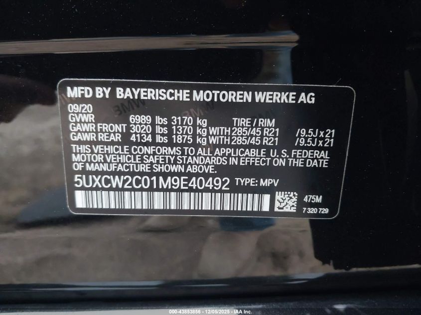 2021 BMW X7 2021 року Бензин, 3.0, Повний привід, vin - 5UXCW2C01M9E40492 з США