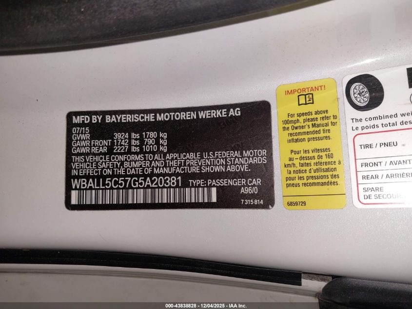 Колір БілийЦиліндри 4Привід Задній привідVIN WBALL5C57G5A20381Стан Заводиться та їде (перевірено)Ушкодження Передня або задня AutoRIA