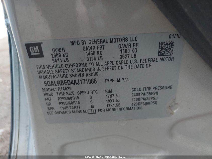 2010 BUICK ENCLAVE 2010 року Бензин, 3.6, Передній привід, vin - 5GALRBED4AJ171986 з США