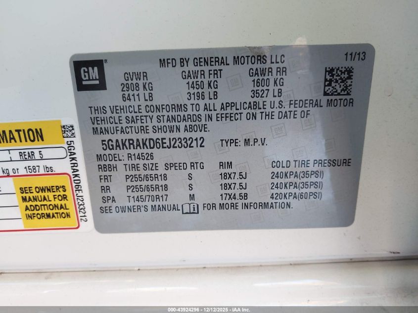 2014 BUICK ENCLAVE 2014 року Бензин, 3.6, Передній привід, vin - 5GAKRAKD6EJ233212 з США