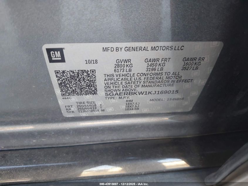 2019 BUICK ENCLAVE 2019 року Бензин, 3.6, Передній привід, vin - 5GAERBKW1KJ169015 з США