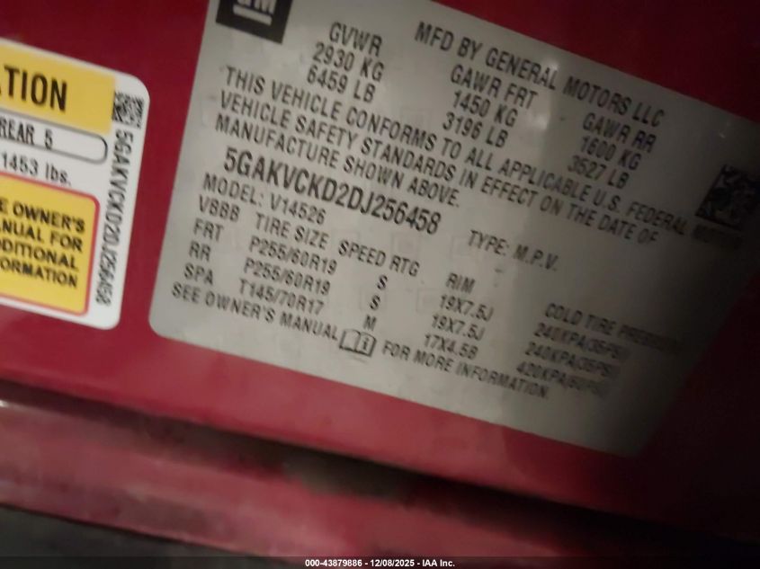 Колір ЧервонийЦиліндри 6Привід Повний привідVIN 5GAKVCKD2DJ256458Стан Заводиться та їде (перевірено)Ушкодження Передня права AutoRIA