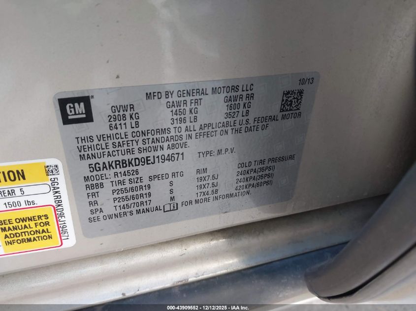 2014 BUICK ENCLAVE 2014 року Бензин, 3.6, Передній привід, vin - 5GAKRBKD9EJ194671 з США