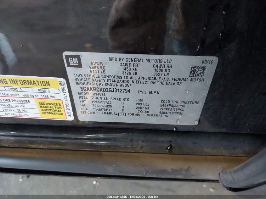2016 BUICK ENCLAVE 2016 року Бензин, 3.6, Передній привід, vin - 5GAKRCKD2GJ312794 з США