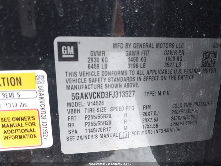 2015 BUICK ENCLAVE 2015 року Бензин, 3.6, Повний привід, vin - 5GAKVCKD3FJ313527 з США