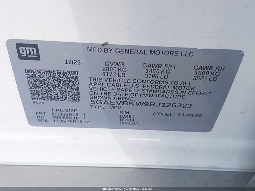 2024 BUICK ENCLAVE 2024 року Бензин, 3.6, Повний привід, vin - 5GAEVBKW9RJ126323 з США