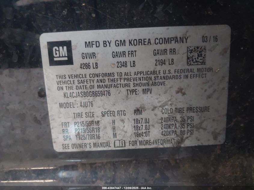 2016 BUICK ENCORE 2016 року Бензин, 1.4, Передній привід, vin - KL4CJASB0GB659476 з США