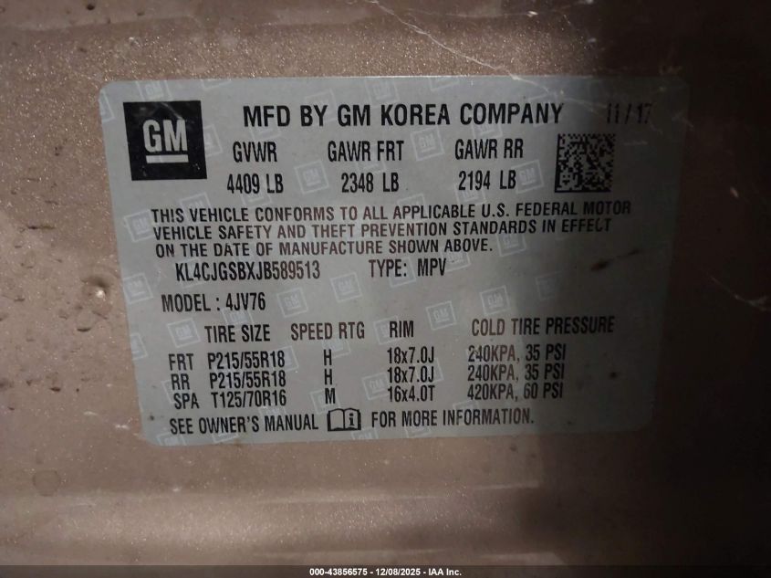 Колір ЗолотийЦиліндри 4Привід Повний привідVIN KL4CJGSBXJB589513Стан Заводиться та їде (перевірено)Ушкодження Права сторона AutoRIA