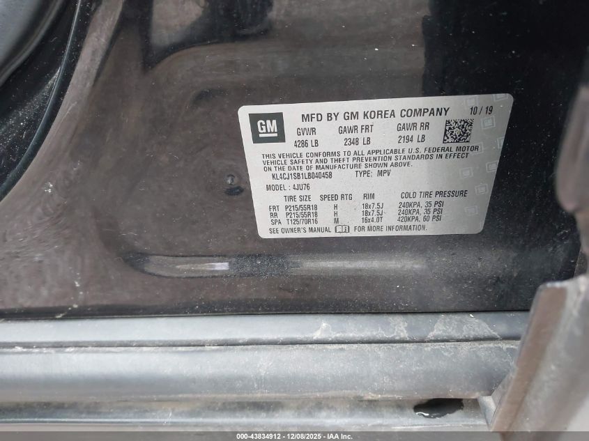 Колір ЧорнийЦиліндри 4Привід Передній привідVIN KL4CJ1SB1LB040458Стан СтаціонарноУшкодження Передня або задня AutoRIA