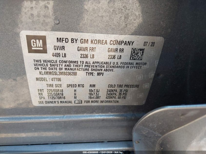 2021 BUICK ENCORE GX 2021 року Бензин, 1.3, Повний привід, vin - KL4MMGSL3MB036288 з США