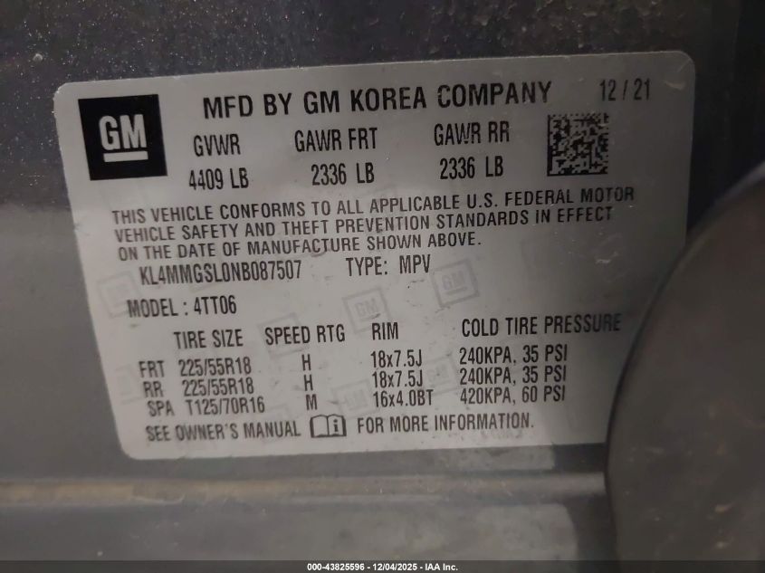 Колір СірийЦиліндри 3Привід Повний привідVIN KL4MMGSL0NB087507Стан СтаціонарноУшкодження Передня або задня AutoRIA