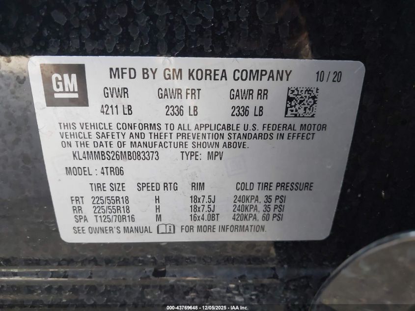2021 BUICK ENCORE GX 2021 року Бензин, 1.2, Передній привід, vin - KL4MMBS26MB083373 з США