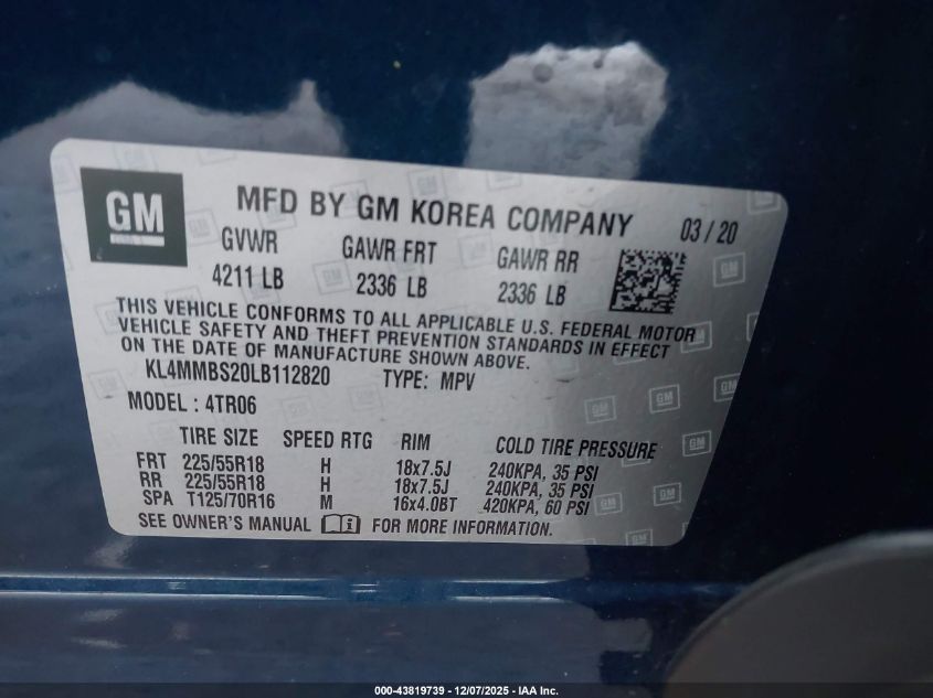 2020 BUICK ENCORE GX 2020 року Бензин, 1.2, Передній привід, vin - KL4MMBS20LB112820 з США
