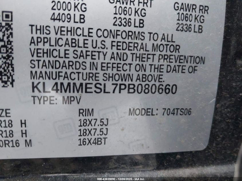 Колір ЧорнийЦиліндри 3Привід Повний привідVIN KL4MMESL7PB080660Стан Заводиться та їде (перевірено)Ушкодження Передня або задня