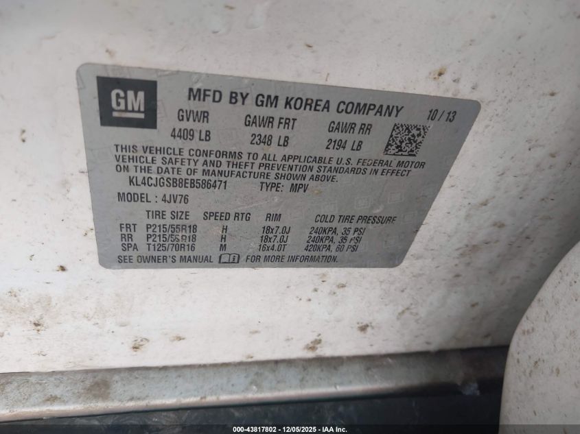 Колір БілийЦиліндри 4Привід Повний привідVIN KL4CJGSB8EB586471Стан Заводиться та їде (перевірено)Ушкодження Передня або задня AutoRIA
