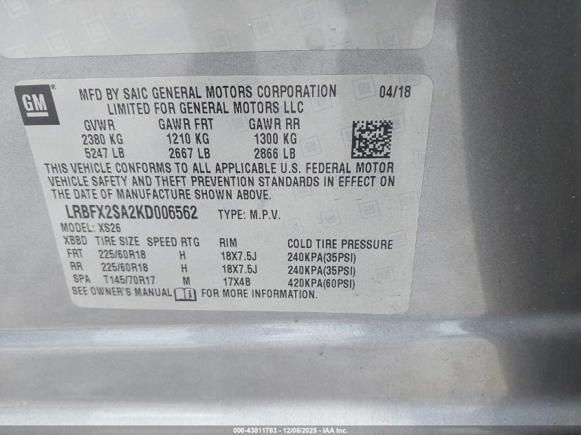 Колір СірийЦиліндри 4Привід Повний привідVIN LRBFX2SA2KD006562Стан Заводиться та їде (перевірено)Ушкодження Передня або задня AutoRIA
