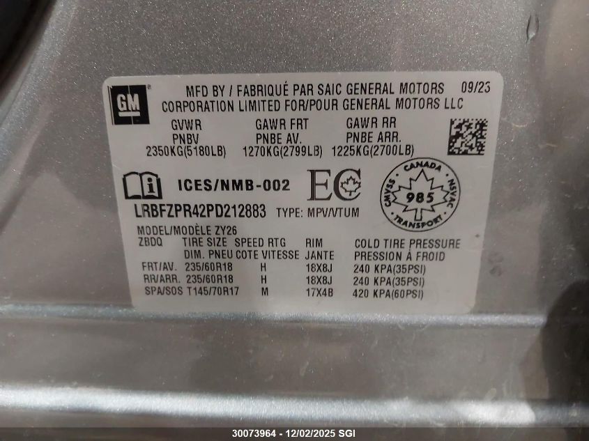 2023 BUICK ENVISION 2023 року Бензин, , Повний привід, vin - LRBFZPR42PD212883 з США