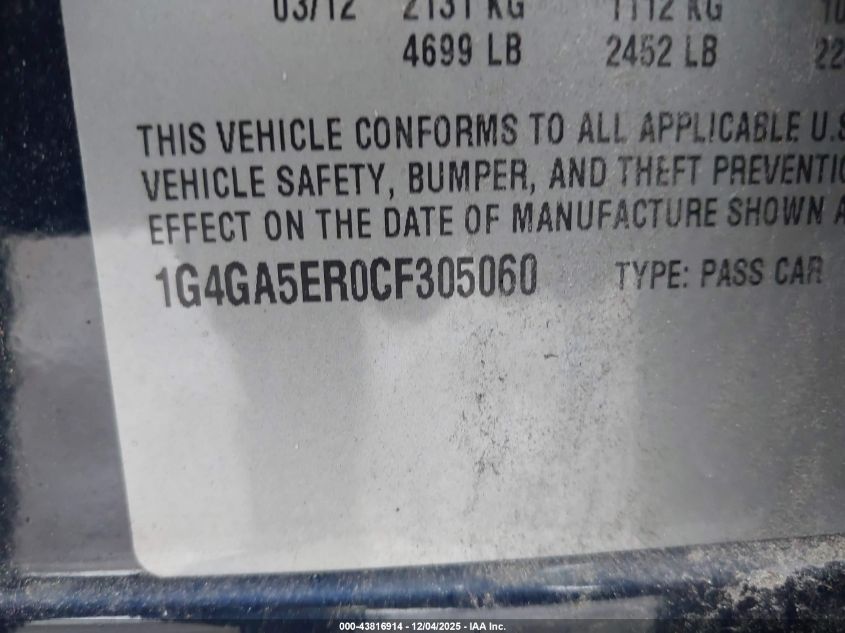 2012 BUICK LACROSSE 2012 року Бензин, 2.4, Передній привід, vin - 1G4GA5ER0CF305060 з США