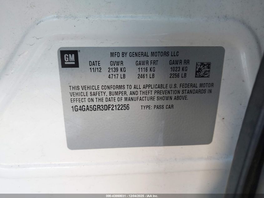 2013 BUICK LACROSSE 2013 року Бензин, 2.4, Передній привід, vin - 1G4GA5GR3DF212256 з США