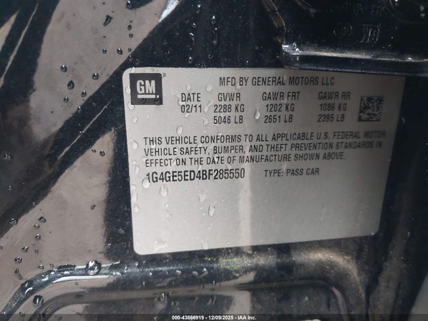2011 BUICK LACROSSE 2011 року Бензин, 3.6, Передній привід, vin - 1G4GE5ED4BF285550 з США