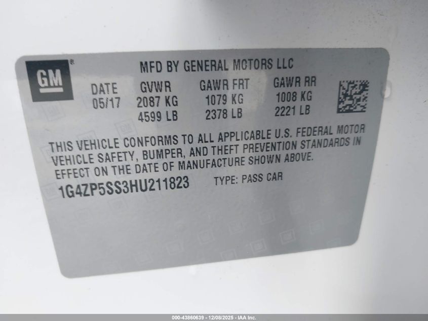 2017 BUICK LACROSSE 2017 року Бензин, 3.6, Передній привід, vin - 1G4ZP5SS3HU211823 з США