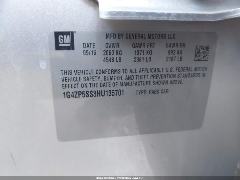 2017 BUICK LACROSSE 2017 року Бензин, 3.6, Передній привід, vin - 1G4ZP5SS3HU135701 з США