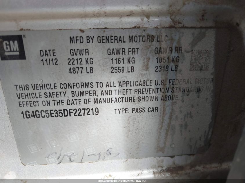 2013 BUICK LACROSSE 2013 року Бензин, 3.6, Передній привід, vin - 1G4GC5E35DF227219 з США