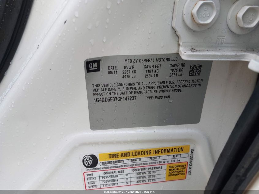 2012 BUICK LACROSSE 2012 року Бензин, 3.6, Передній привід, vin - 1G4GD5E37CF147237 з США