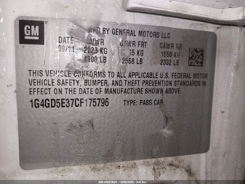 2012 BUICK LACROSSE 2012 року Бензин, 3.6, Передній привід, vin - 1G4GD5E37CF175796 з США